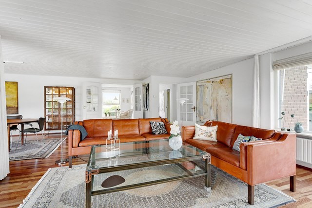 Spisestuen ligger i åben forbindelse hertil, mens den indbydende opholdsstue ligeledes vil fungere som et optimalt samlingspunkt i hjemmet. Tre regulære værelser kan anvendes efter eget ønske, og det hele fuldendes af badeværelse med separat brus samt bryggers.