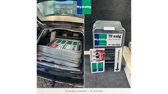 Så er bilen pakket til mæglerrunden, og to flotte skilte venter på at blive sat op ved endnu et skønt hus!