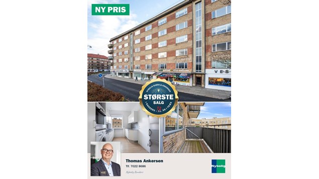 Nybolig Bjørn & Ankersen: Ny pris på stor ejerlejlighed i Randers C