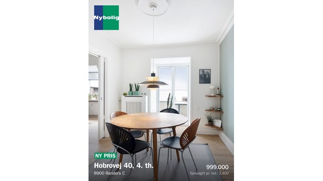 Der er dobbelt op på gode nyheder her på Hobrovej 40, 4. th., 8900 Randers C, hvor denne flotte og lyse 4-værelses lejlighed netop er justeret med 100.000 kr., hvorfor den nye pris nu er 999.000 kr.